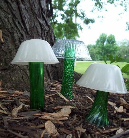 People Are Upcycling Old Glassware Into Stunning Glass Garden Mushrooms